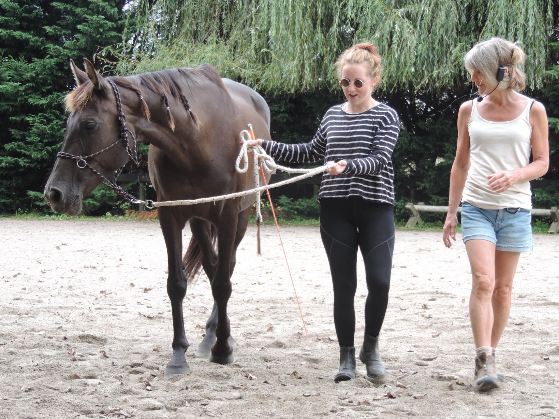 When you walk with your horse on a circle and your horse looks away or is distracted, just try this next time. Instead of pulling on the rope or rein, see what happens when you touch or 'tickle' the girth area (where your leg would be if you were riding).