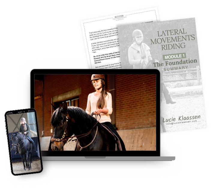 “The lateral movements riding course has brought me so much more than starting to ride lateral movements. I regained confidence to ride on a barebackpad, learned riding with three to one reins and got so much more insight in riding with the seat and body. And just like lateral movements simplified, I learned this all while having fun! ”