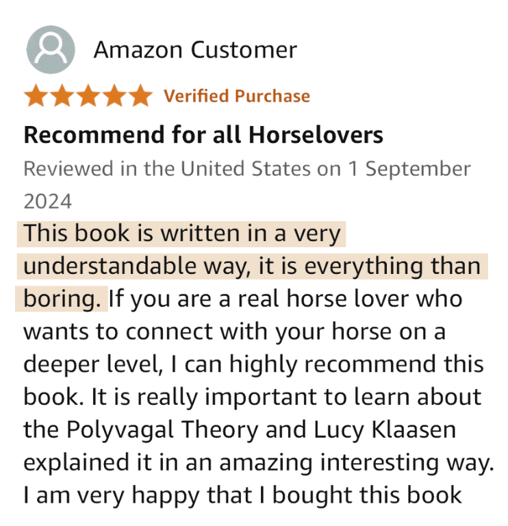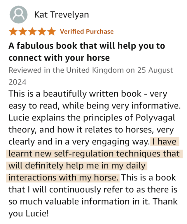 "What makes her—and this book—special is her ability to take something as scientific and complex as polyvagal theory and the autonomic nervous system, and translate it into something that we as horse people can understand and relate to on the level of our own experience."
