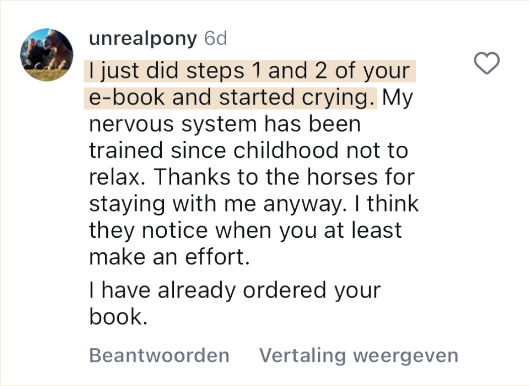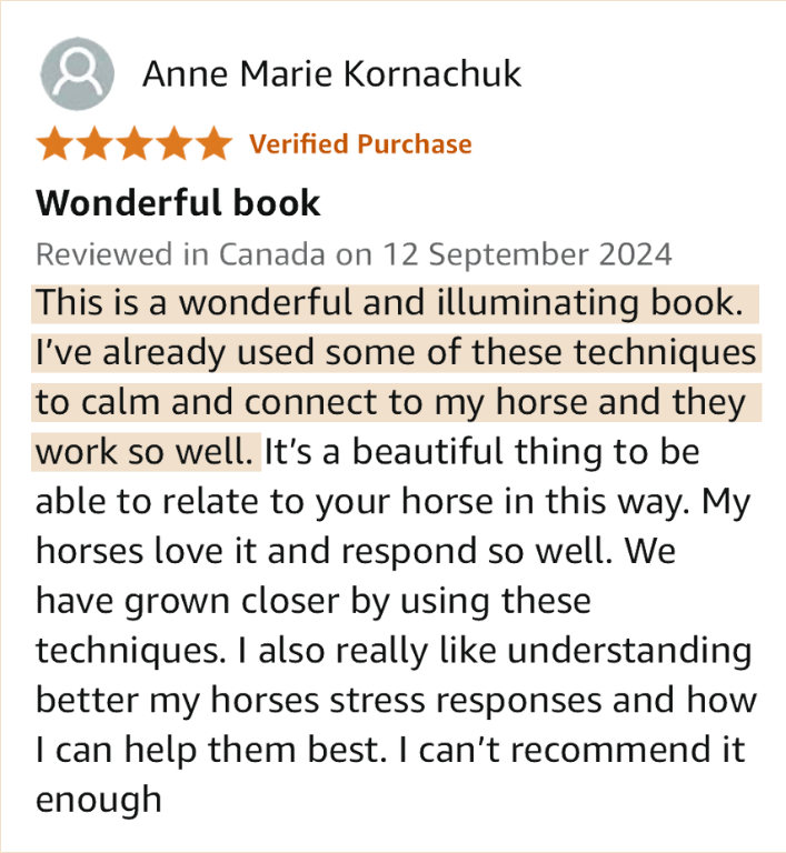 This book will change the way you look at training your horse. It's a hands-on guide filled with practical exercises that will help you to feel calm, relaxed and in your own confident power every time you're with your horse. Especially in challenging situations that normally stress you out and make you want to give up!