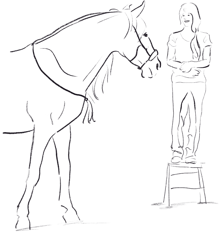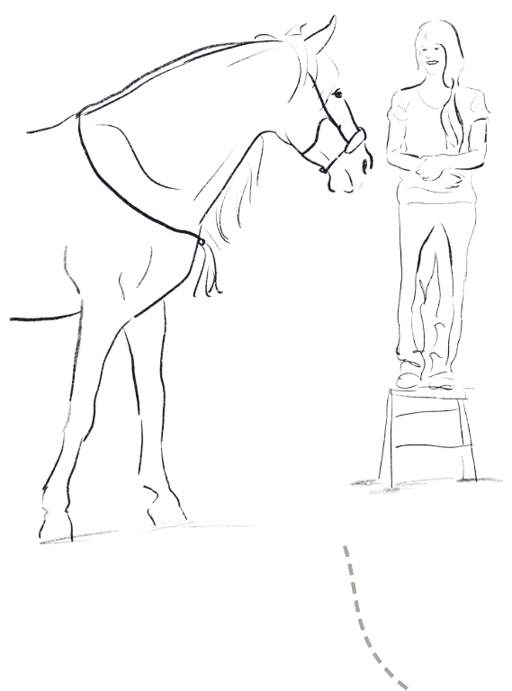Invite your horse to come to the mounting block and wait for you to mount, so you can start a relaxed ride together.